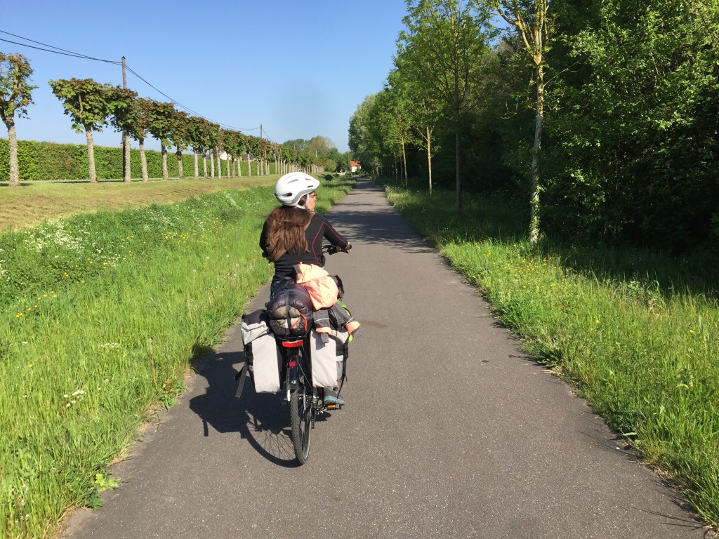 On s’est couché tard, mais au réveil, il ne restait plus qu’à mettre la trousse de toilette dans une sacoche et on était bon. Je suis descendu une première fois à la gare juste avec mon vélo pour pouvoir rendre la voiture ensuite, tandis que Clem est partie de son côté avec les enfants dans la carriole.