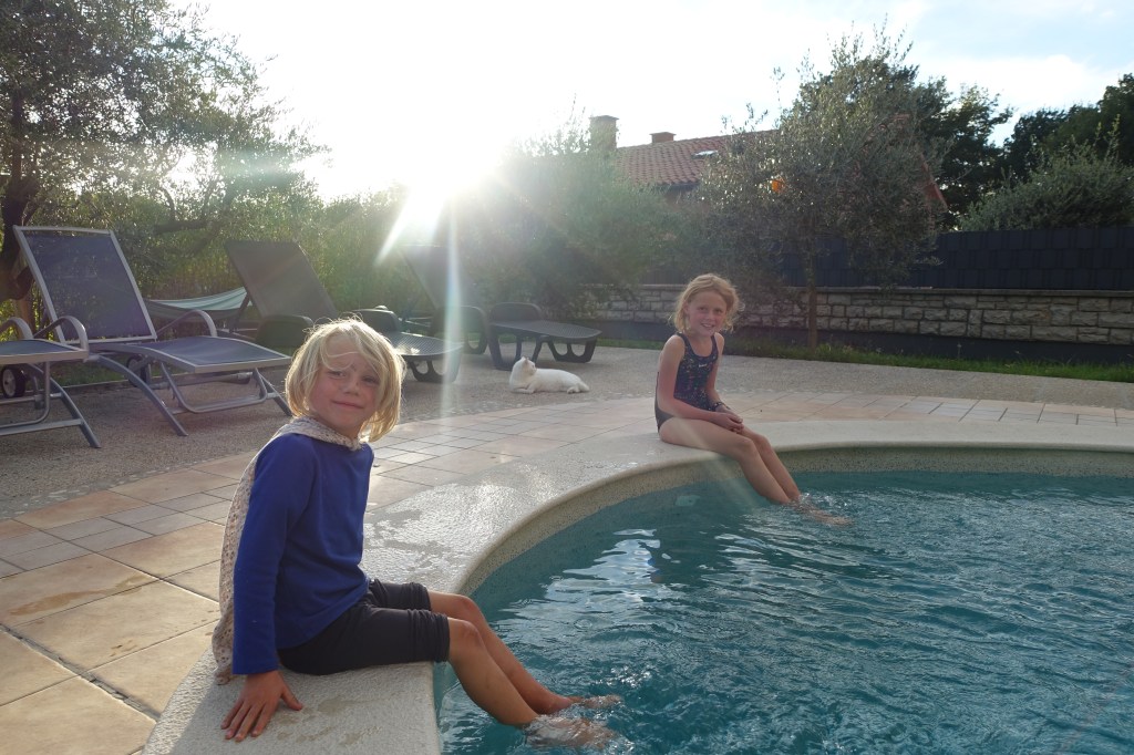 Notre ferry pour l’île de Rab part à 18h20. Nous prenons notre temps pour ranger et faire l’école. Les enfants profitent bien de la piscine et des jeux.