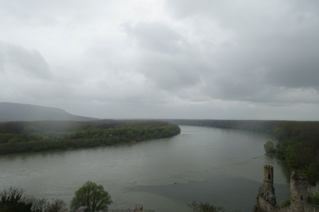 Le Danube est calme, limpide ce matin, semblable à une mer d’huile. Signe d’absence totale de vent, youpi. Il fait frisquet mais en principe pas de pluie. Le haut des collines baigne dans la brume.