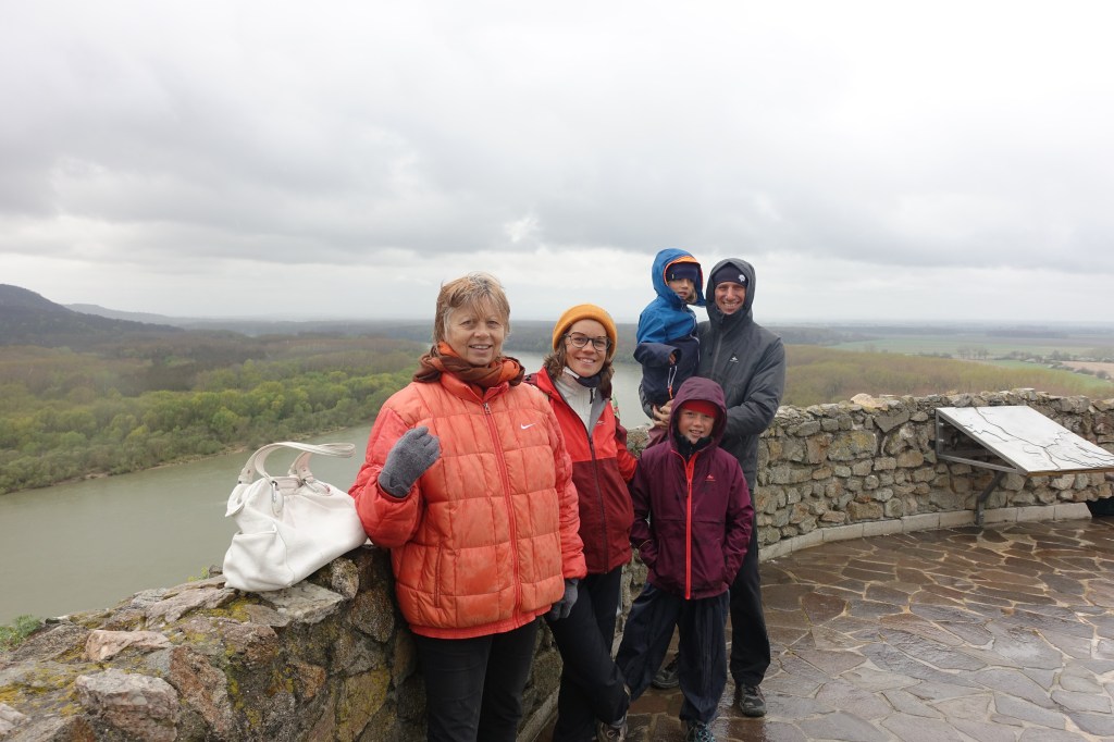 Hier nous avons eu une super journée avec Hedvige. C’était le marathon de Bratislava (le même jour que celui de Paris !), et elle nous a emmenés loin du tumulte de la ville, d’abord à une aire de jeux dans une forêt où nous avons pu faire du feu à l’abri de la pluie, puis au château de Devin. Une très belle ruine, digne des meilleurs châteaux écossais. Le temps était moyen, mais quelques éclaircies ont illuminé la vallée du Danube que domine le château. Hedvige nous a expliqué que pendant l’ère communiste, le Danube servait de frontière avec l’ouest et qu’elle était farouchement gardée par des militaires. Toute personne qui tentait de traverser était abattue ! Les enfants nous ont suivis moyennement puis avec entrain.