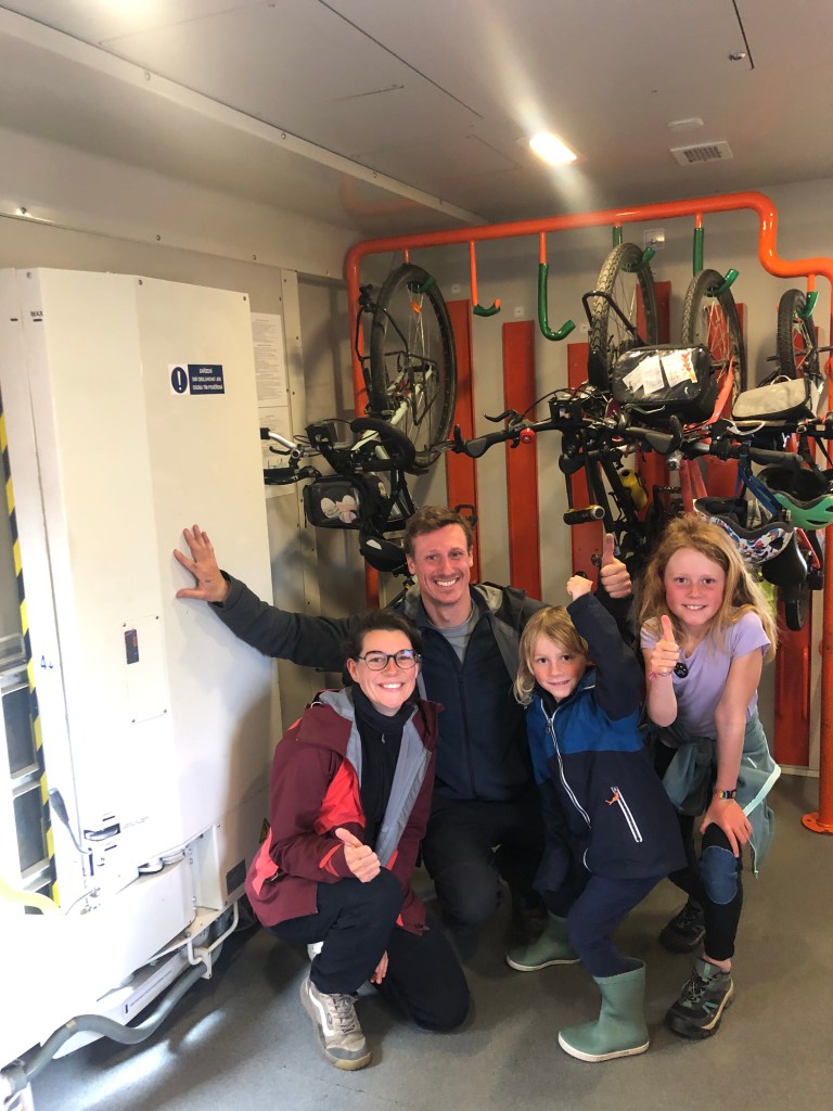 Le bus arrive. Il est vide. Personne ne parle anglais, mais nous arrivons à comprendre. Les vélos des enfants et nos sacoches vont en soute, nos vélos sont chargés direct dans le bus.