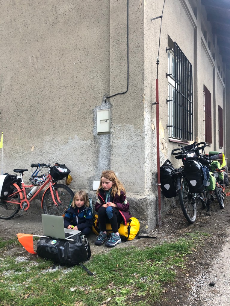 Nous commençons la matinée au calme chez Daniel, notre Warmshowers autrichien. Il est parti travailler à 7h15 en nous laissant une clef pour profiter de son appartement comme si c’était le nôtre. Encore une fois une belle preuve de confiance, en toute simplicité ! Nous essayons d’en profiter pour une bonne session d’école mais les enfants, surtout Maxine, ont un peu de mal à se concentrer ce matin. Heureusement que nous serons bien posés dans les prochains jours pour rattraper ça !