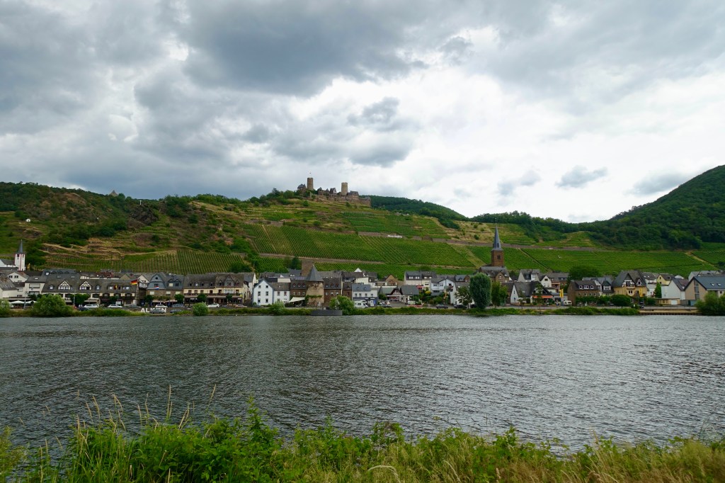 Nous repartons, et nos yeux sont ravis du paysage qui leur est servi. De chaque côté de la Moselle, des collines recouvertes de végétation. Des forêts feuillues ou des vignes vives et brillantes sous le soleil. L’homme (ou la femme, je sais pas) a taillé dans la roche des terrasses pour la viticulture. Certaines sont étroites et donnent le vertige. Il y a également des installations pour remonter mécaniquement le raisin vendangé ou les vendangeurs sur des petits trains qui doivent donner de sacrés frissons.