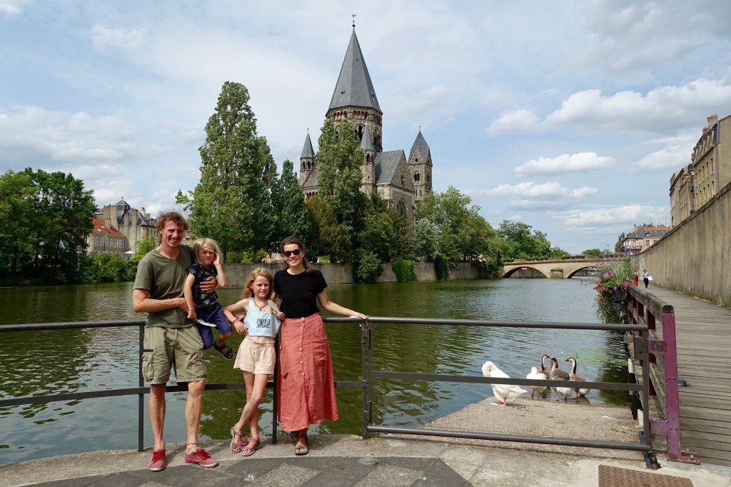 Face à cette impossibilité constante de bivouaquer et à la lassitude des enfants sur leurs vélos, nous décidons de nous arrêter à Trèves. Nous dormirons chez un Warmshowers pour la nuit, puis train pour Metz où nous resterons 3/4 jours en souvenir de notre vie d’avant.