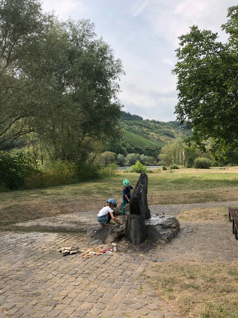 Les enfants sont en forme et c’est détaché qu’ils pédalent toute la matinée. Ravitaillement et pique-nique à Kobern-Gondorf. Nous prenons notre temps. Les enfants jouent devant l’église où nous nous restaurons. Le village est charmant.