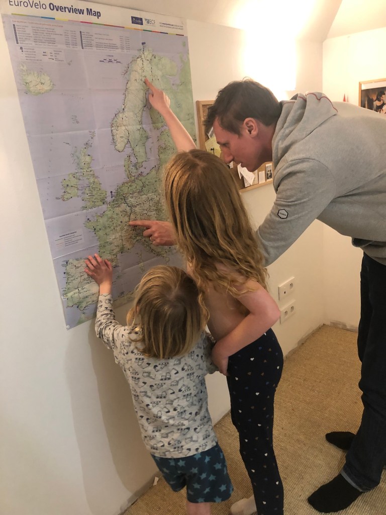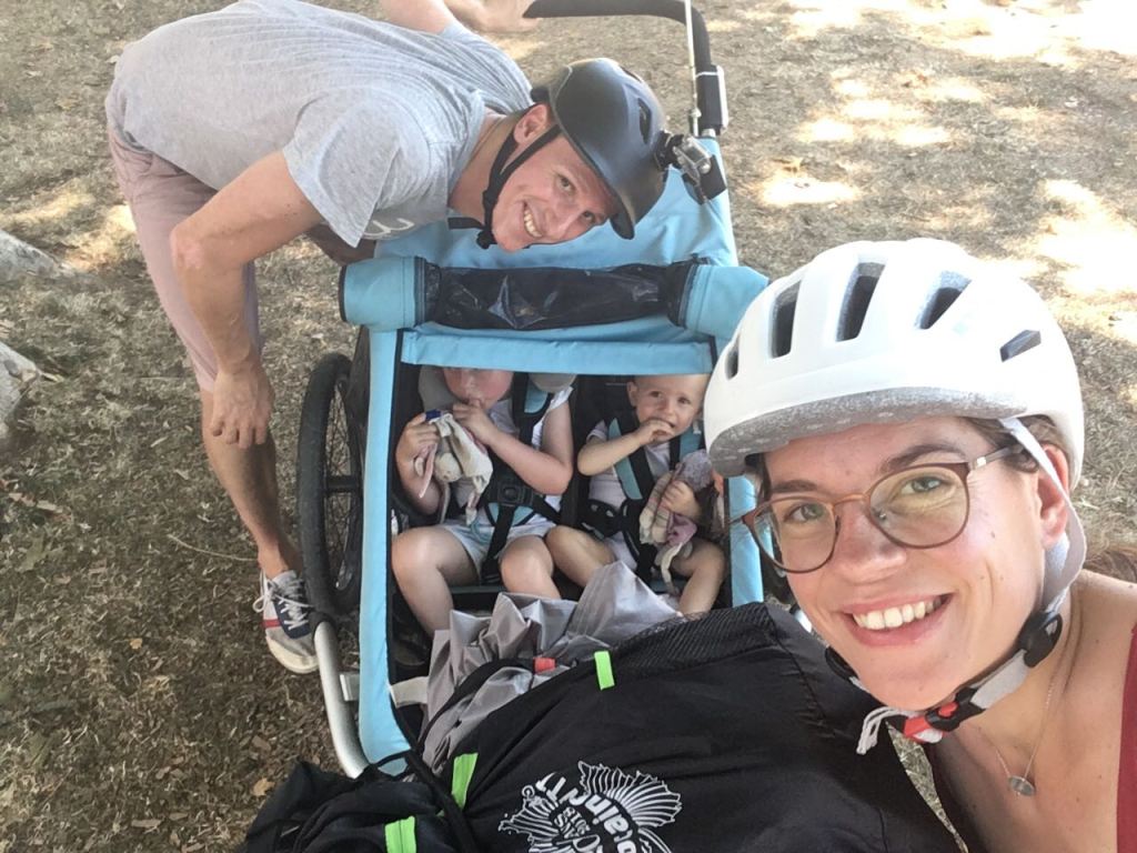 L’été 2017 arrive. Notre voiture rend l’âme le jour de la naissance d’Arsène (épisode raconté ici), et en même temps que lui, naît l’envie de vivre sans voiture et de se déplacer à vélo. Petit à petit, le vélo prend de plus en plus de place dans nos vies. Nous l’utilisons au quotidien pour nous déplacer, mais aussi pour faire nos courses ou nous balader. Les enfants adorent prendre place dans leur carriole et s’y endorment rapidement. Nous décidons alors de sauter le pas du premier voyage à vélo en ralliant l’Angleterre Nous découvrons la lenteur et silence de moyen de transport doux. L’expérience, racontée ici, sera plus que concluante. Près de 10 ans après être tombés amoureux, nous avons un nouveau coup de foudre ! Love at first sight pour le cyclotourisme.