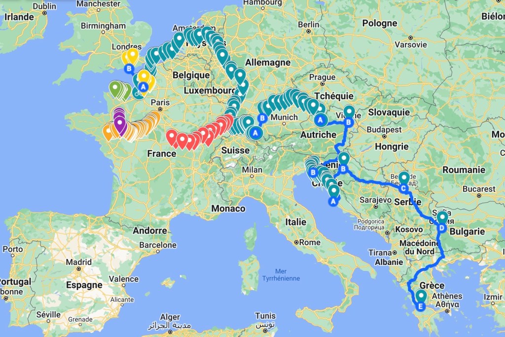 L’itinéraire se base sur les nombreuses EuroVélo routes qui sillonnent le continent européen.
