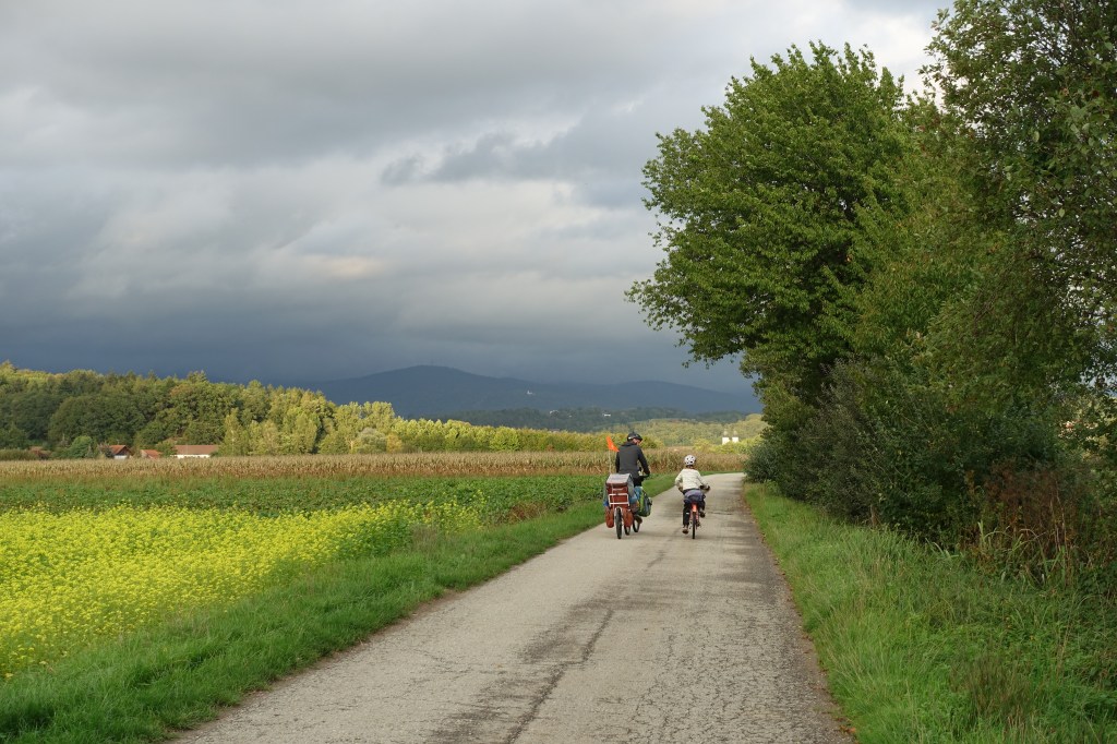 Vent dans le dos à partir de 14h, c’est ouf ! Nous filons ! Déjà plus de 25 km au compteur. Nous sommes éloignés du Danube et sillonnons la campagne autrichienne.