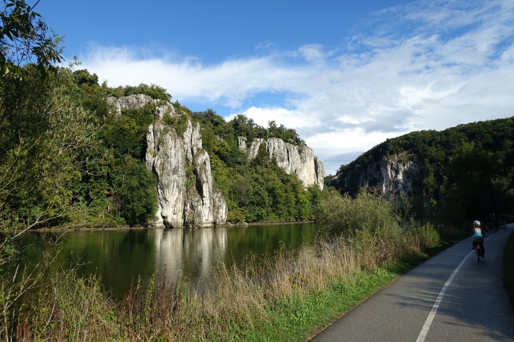 Nous quittons la piste cyclable et sommes sur une route partagée au bord du Danube. Plus de digue ici, le Danube est à quelques mètres de nous. Les grosses berlines allemandes qui foncent aussi. C’est fou, encore une fois, plus la voiture coûte cher, plus son conducteur se sent obligé de foncer. Résultat, grimace et nous nous installons au milieu de notre voie pour les forcer à ralentir. On doit l’avouer, on supporte mal ces comportements et on ne se prive pas de le montrer, ça défoule !