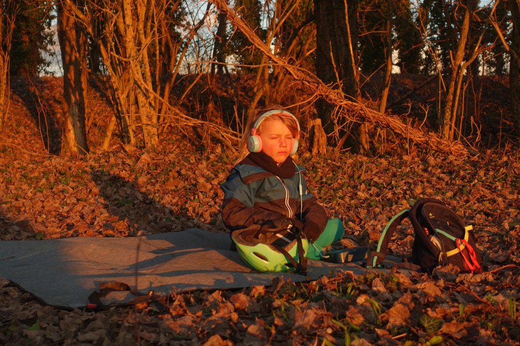 Ce matin au réveil, il faisait trois degrés dans la tente. Les enfants n’ont pas eu très faim pour le petit-déjeuner et avant la fin de celui-ci, Arsène s’est endormi dans mon duvet. Maxine a fait une leçon d’anglais sur Pâques avec Clem, pendant que je continuais de manger mes tartines. Le matin, j’ai beaucoup d’appétit, d’autant plus que Hedvige nous a donné un pot de confiture de cassis… Un véritable délice !