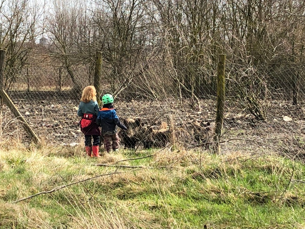 Maxine et moi apercevons une dizaine de chevreuils détaler devant nous. Leurs petites queues blanches hypnotisent alors qu’elles bondissent dans les champs. Nous arrivons dans le petit village de Scharndorf. Un grand bâtiment ressemblant à une ferme attire notre attention. Il s’agit d’un centre équestre. Maxine et moi trouvons la gérante dans le manège qui nous propose de camper dans un de ses près. Parfait ! Nous emmitouflons les enfants dans les nouvelles couvertures polaires le temps de monter la tente. Nous sommes tous frigorifiés. Les températures descendent rapidement avec la course du soleil vers l’horizon.