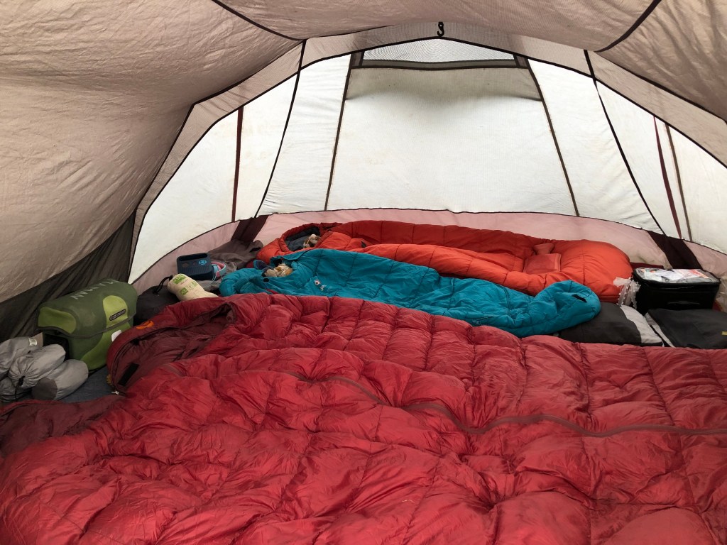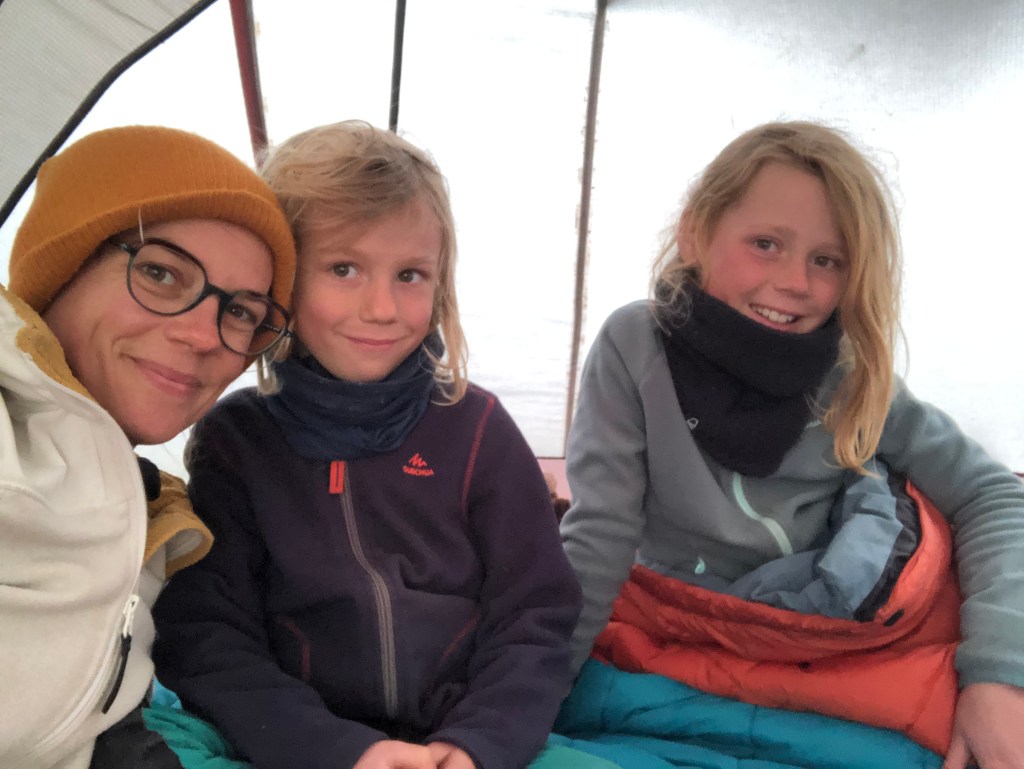 En vrai, ce n’était pas la nuit la plus froide. Dehors avec le vent, il faisait glacial, mais sous la tente c’était plus qu’acceptable. Les enfants s’étaient bien emmitouflés dans la couverture polaire dans le duvet. Vers 3h30, je ne dormais plus et je commençais à tourner en rond. Plutôt que de m’ennuyer avec mes pensées, je suis allé préparer des bouillottes pour tout le monde. La douce chaleur diffusée dans le duvet au moment de me recoucher m’a bien endormi !