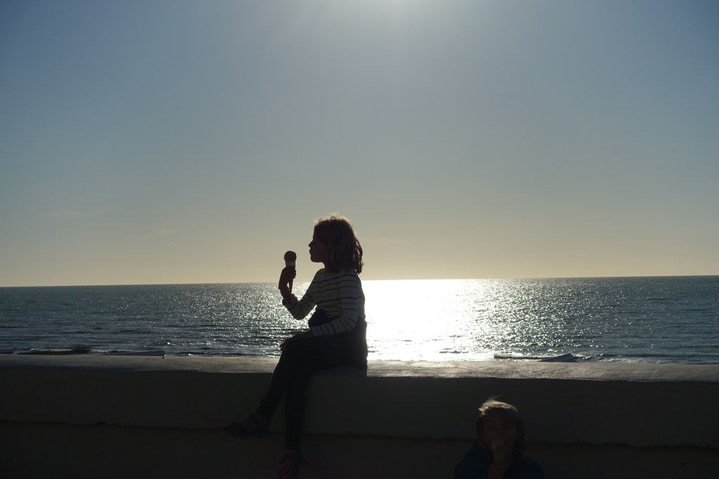 Nous partons prendre une glace face au soleil couchant a Pourville. Les enfants se couchent tard mais plus sereinement qu’hier. Nous prenons le temps d’énumérer les pépites (= meilleur moment de la journée), cailloux (= moment le moins bien de la journée) et graines (moment à améliorer) de chacun.